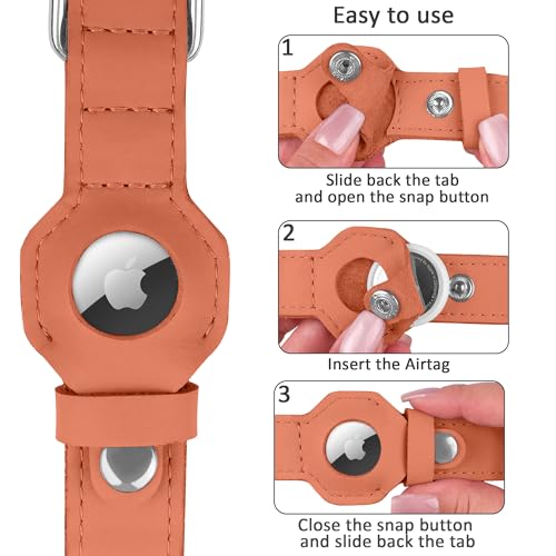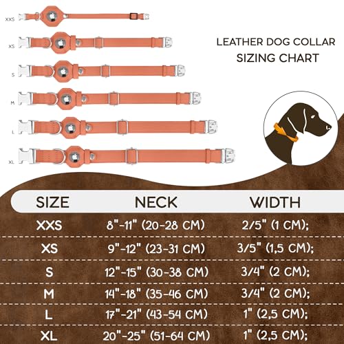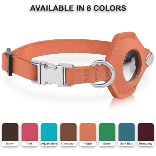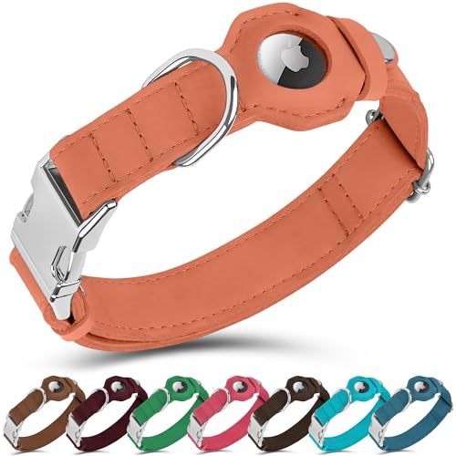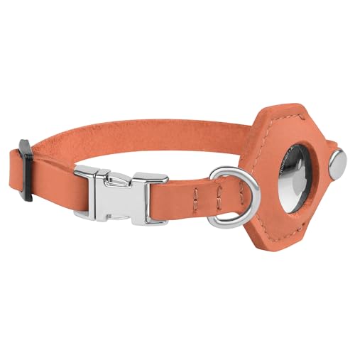 Leather Dog Collar with Airtag Holder – Non Breakaway Soft Adjustable Airtag Dog Collar with Metal Buckle – GPS Tracking Pet Collar for Small Dogs Puppy Cat (Peach, XXS, 8″-11″ Neck Fit)