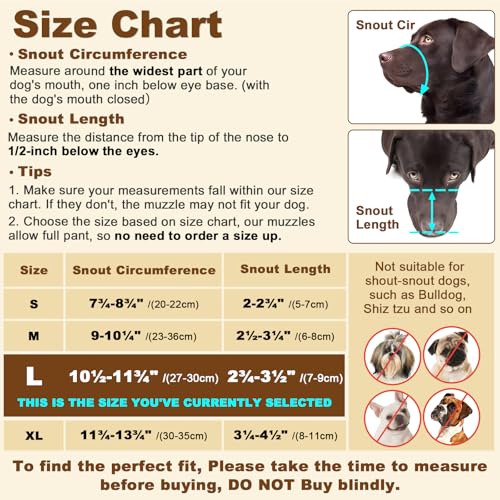 Size Options – LARGE(Circumference:10½-11¾ in): This option is suitbale for LARGE dogs. The dog muzzle for large dogs anti biting is fit for Golden Retriever, Labrador, German Shepherd, Doberman, and so on. Please note that the breed recommendation is just for REFERENCE only. To make the dog muzzle large breed fit your dog perfectly, please measure the size before buying the basket muzzle for large dog.